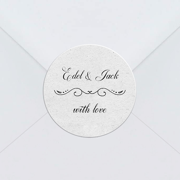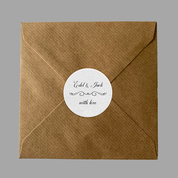 The ‘Romantic Script’ sticker design is simple, clean and contemporary and features one of our popular ‘print effect’ paper textured backgrounds.